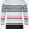 Μπλούζα βασικού στυλ με στενή γραμμή, μέτριο μήκος και κομψή λαιμόκοψη τύπου «υποβρύχιο». Το ριγέ μοτίβο προσδίδει ζωντανές πινελιές στο σύνολο, ενώ η σχεδίαση χωρίς κλείσιμο εξασφαλίζει άνετη και θηλυκή εφαρμογή.