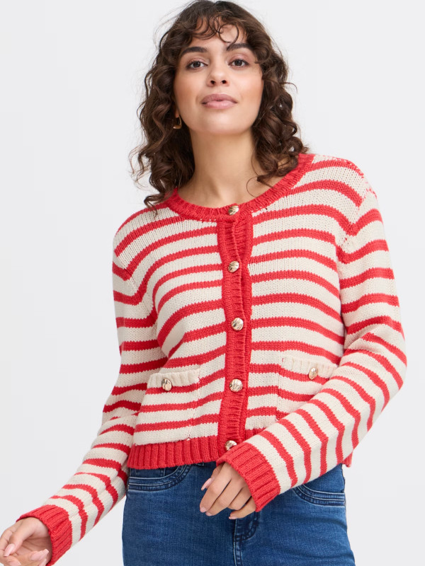 Fransa Γυναικεία Ζακέτα Ριγέ Λευκή Κόκκινη.
