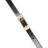 Στενή ζώνη με γυαλισμένη, ορθογώνια χρυσή αγκράφα. Η απαλή υφή και οι καθαρές γραμμές προσδίδουν μια μοντέρνα και εκλεπτυσμένη εμφάνιση.