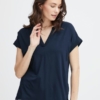 FRANSA Γυναικεία Μπλούζα Κοντομάνικη Με V-Neck Μπλέ