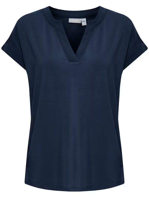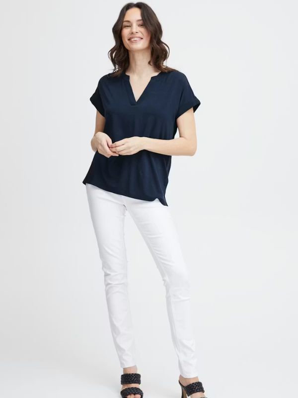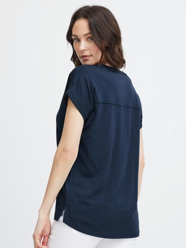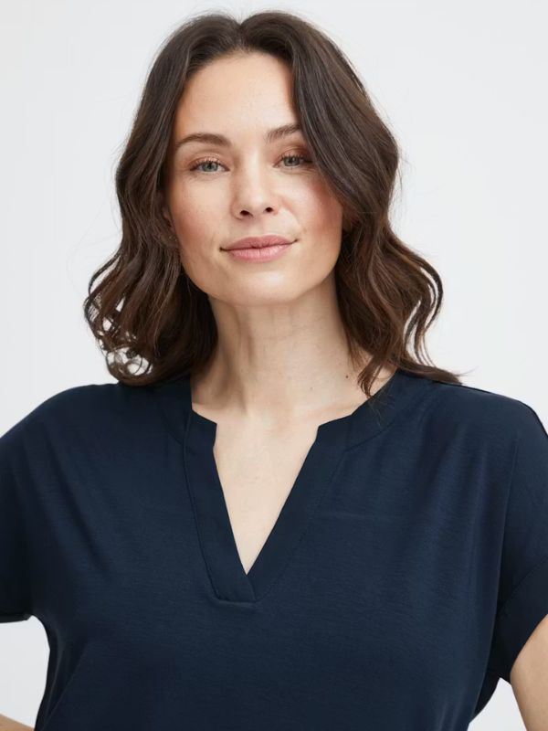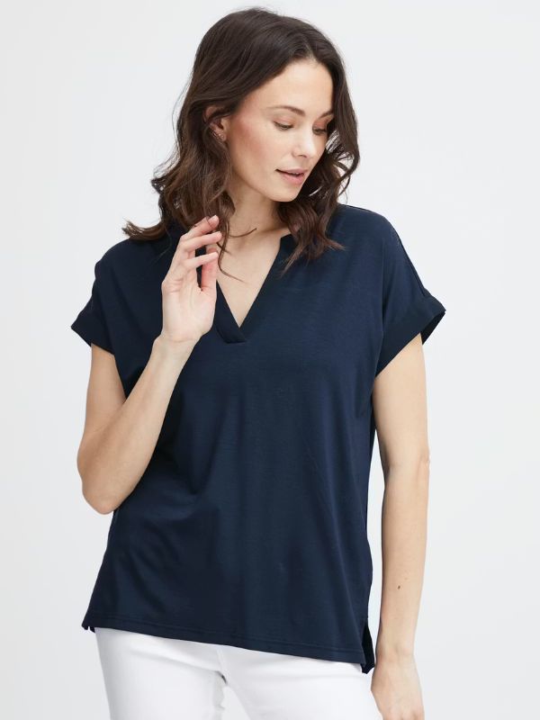 FRANSA Γυναικεία Μπλούζα Κοντομάνικη Με V-Neck Μπλέ