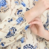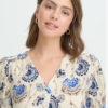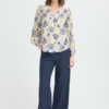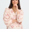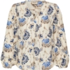 Μπλούζα με V-neck, διακριτική υφή και μακριά μανίκια με πτυχώσεις στα μανίκια. Απαλή, άνετη γραμμή με ίσιο τελείωμα και ολόκληρο τύπωμα εμπνευσμένο από λουλούδια.