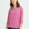 Αυτό το μπλουζάκι με ίσια γραμμή διαθέτει διακριτικό μικροτυπωμένο μοτίβο σε όλη την επιφάνεια, φαρδιά στρογγυλή λαιμόκοψη και μανίκια 3/4. Η απαλή του εμφάνιση και οι καθαρές γραμμές του δημιουργούν μια άνετη, μοντέρνα σιλουέτα.
