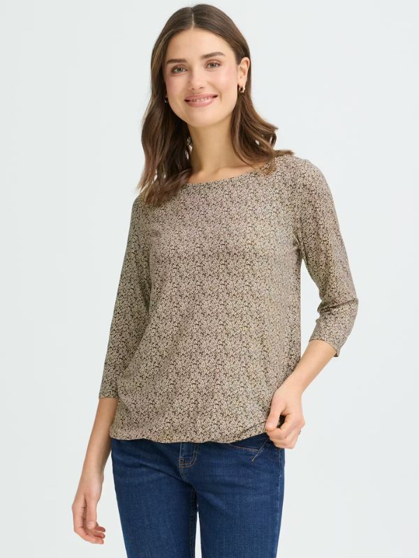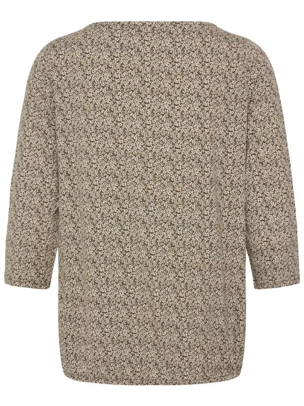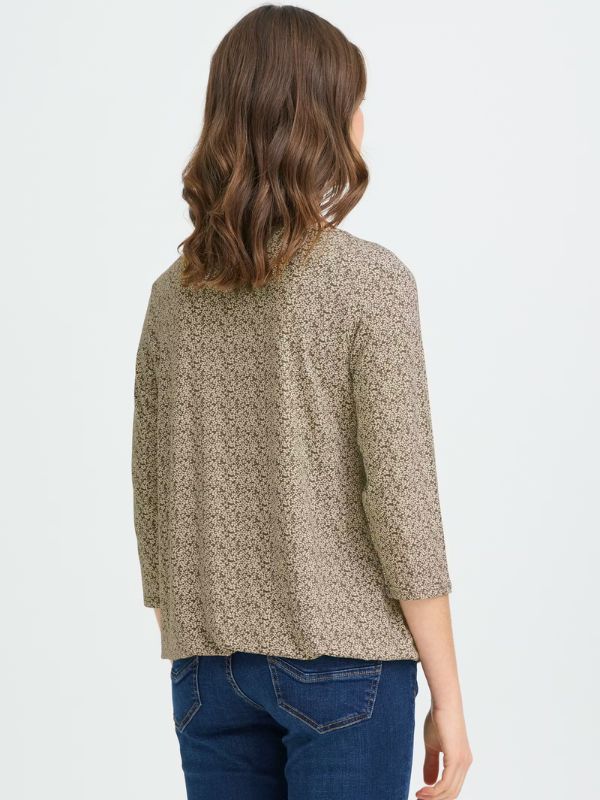 Αυτό το μπλουζάκι με ίσια γραμμή διαθέτει διακριτικό μικροτυπωμένο μοτίβο σε όλη την επιφάνεια, φαρδιά στρογγυλή λαιμόκοψη και μανίκια 3/4. Η απαλή του εμφάνιση και οι καθαρές γραμμές του δημιουργούν μια άνετη, μοντέρνα σιλουέτα.
