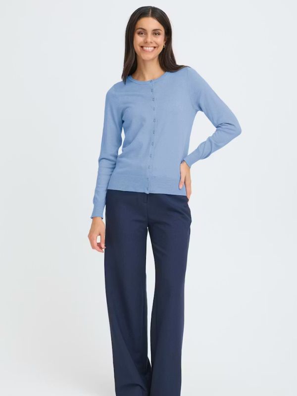 Αυτή η γυναικεία ζακέτα έχει άνετη κανονική εφαρμογή, στρογγυλή λαιμόκοψη και μακριά μανίκια. Το κλείσιμο με κουμπιά μπροστά και οι ραβδιστές λεπτομέρειες προσδίδουν διαχρονικό στυλ, καθιστώντας την ιδανική για συνδυασμούς σε κάθε εποχή.
