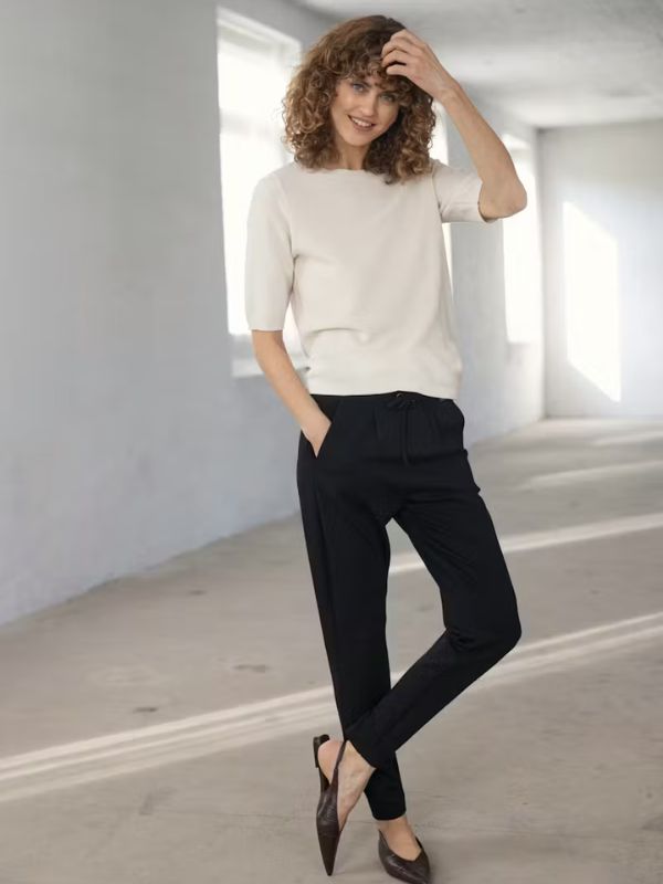 Γυναικείο παντελόνι με ελαστική μέση και κορδόνι για ρυθμιζόμενη εφαρμογή.