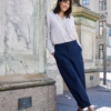 Παντελόνι σε στενή γραμμή με ίσια, κοντό μήκος και εμφανείς ραφές μπροστά. Διαθέτει κλασική ζώνη μέσης, εμφανείς τσέπες μπροστά και κλείσιμο με ένα κουμπί