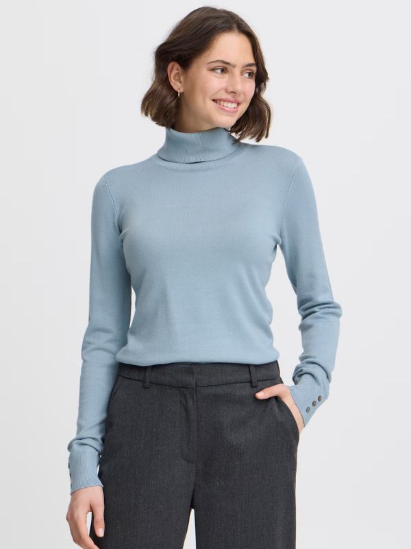 Πουλόβερ με ζιβάγκο, κλασική γραμμή και λεπτομέρεια με κουμπιά στα μανίκια. Για ευέλικτο στυλ και άνεση με μακριά μανίκια, ραβδωτή λαιμόκοψη και κομψή γραμμή.
