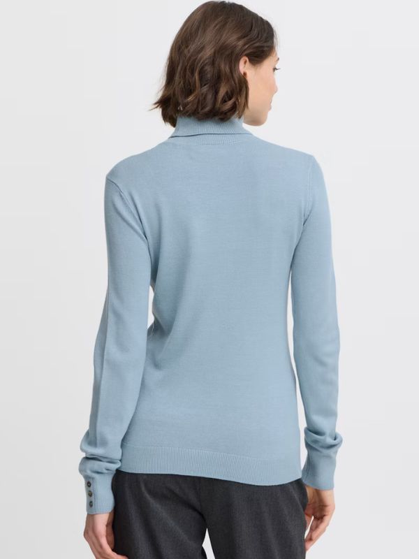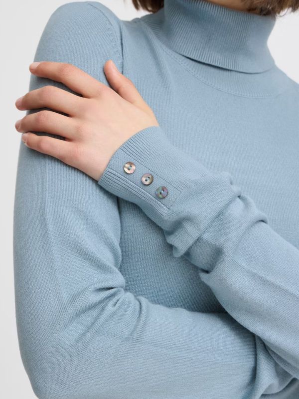 Fransa Γυναικείο Πουλόβερ Ζιβάγκο Με Κουμπιά Στα Μανίκια Γαλάζιο