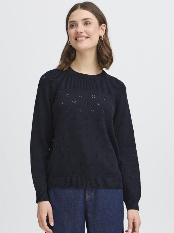 Fransa Γυναικείο Πουλόβερ Με Διάτρητο Σχέδιο Μπλε