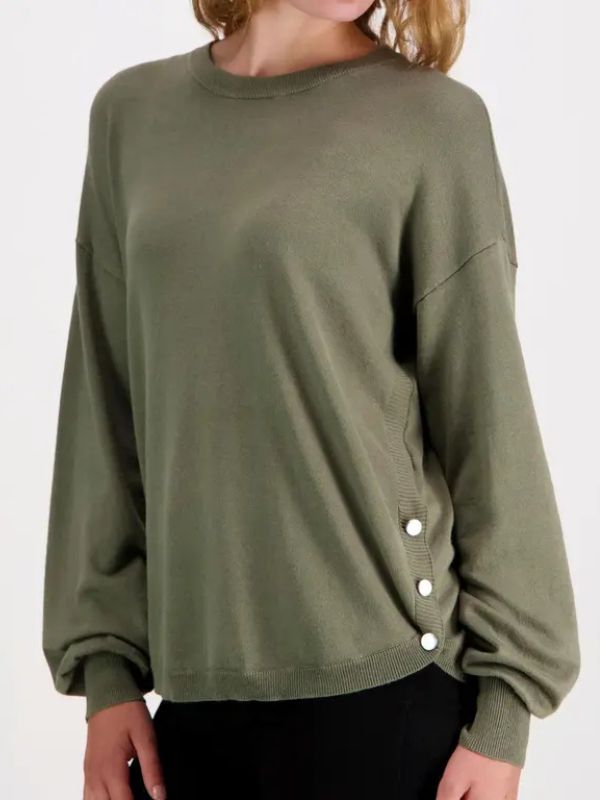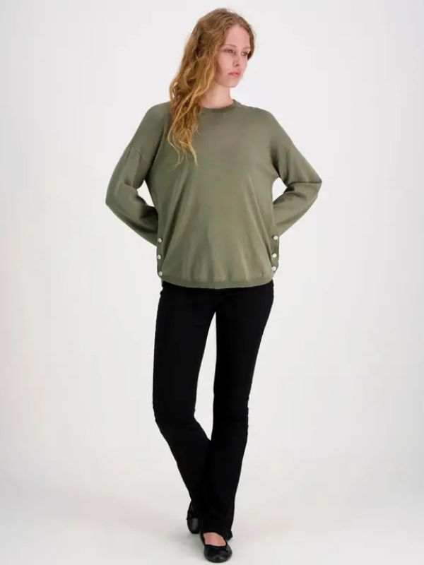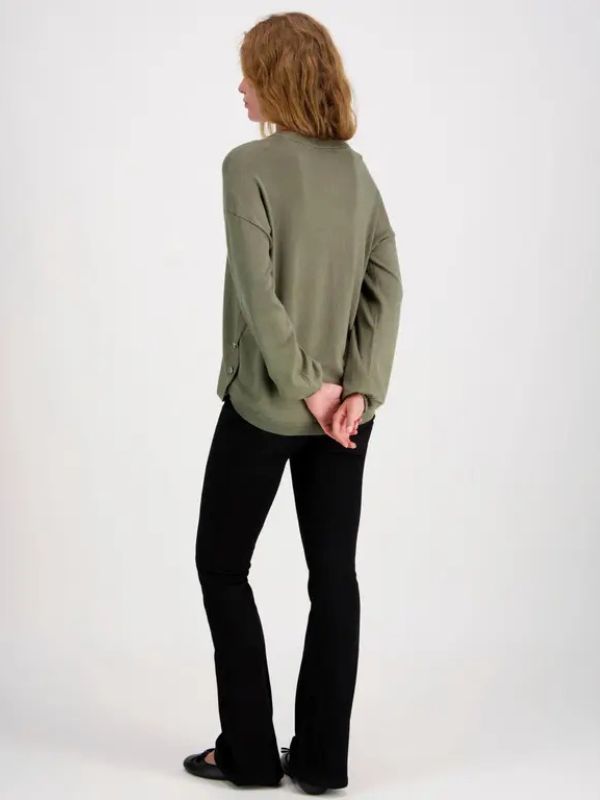 Fransa Μακρυμάνικο Πουλόβερ Με Διακοσμητικά Κουμπιά Σκούρο Λαδί.