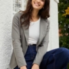 Αυτό το γυναικείο σακάκι σε στενή γραμμή προσφέρει ένα μοντέρνο επαγγελματικό στυλ.