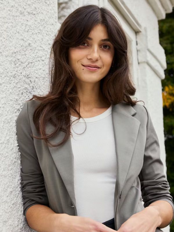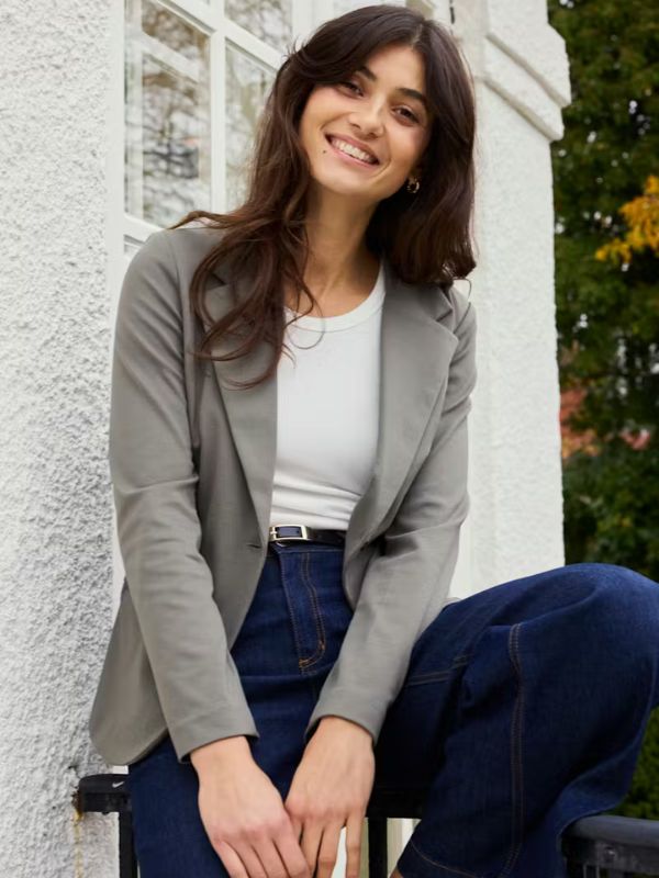 Αυτό το γυναικείο σακάκι σε στενή γραμμή προσφέρει ένα μοντέρνο επαγγελματικό στυλ.