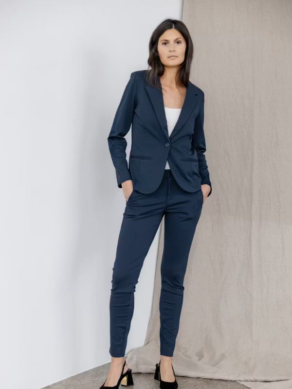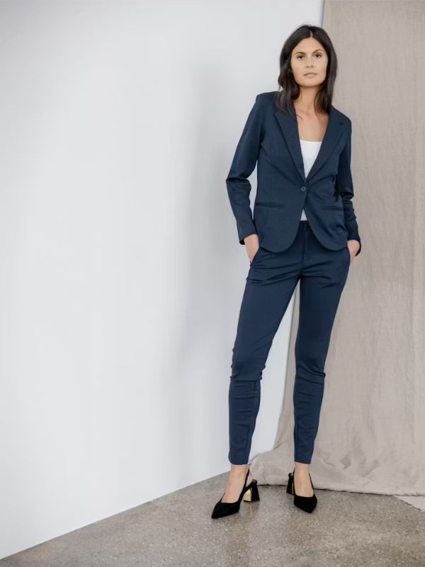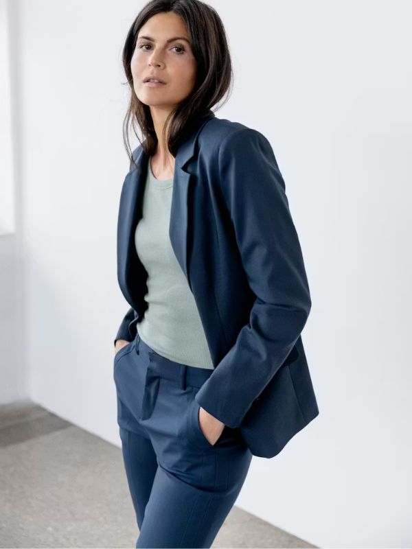 Αυτό το γυναικείο σακάκι σε στενή γραμμή προσφέρει ένα μοντέρνο επαγγελματικό στυλ.