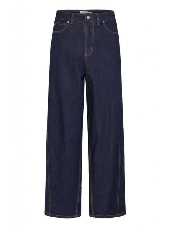 Fransa γυναικείο τζιν παντελόνι σε μπλε σκούρο χρώμα. Είναι ψηλόμεσο σε φαρδιά γραμμή.