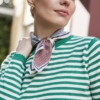 Μαντίλι/φουλάρι με ρίγες, απαλό φινίρισμα, διαγώνιο μοτίβο ρίγων και ελαφριά, ρευστή πτώση. Η τετράγωνη γραμμή του προσφέρει ευελιξία στο στυλ και ανεπιτήδευτη κομψότητα.