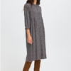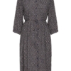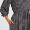 Αυτό το φόρεμα-πουκάμισο έχει χαλαρή εφαρμογή, κουμπιά μπροστά, δέσιμο στη μέση και μακριά μανίκια για ευέλικτο στυλ και άνεση. Το μεσαίο μήκος και η διακριτική λεπτομέρεια στο γιακά ενισχύουν την καθημερινή του κομψότητα.