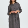 Αυτό το φόρεμα-πουκάμισο έχει χαλαρή εφαρμογή, κουμπιά μπροστά, δέσιμο στη μέση και μακριά μανίκια για ευέλικτο στυλ και άνεση. Το μεσαίο μήκος και η διακριτική λεπτομέρεια στο γιακά ενισχύουν την καθημερινή του κομψότητα.