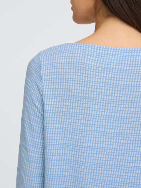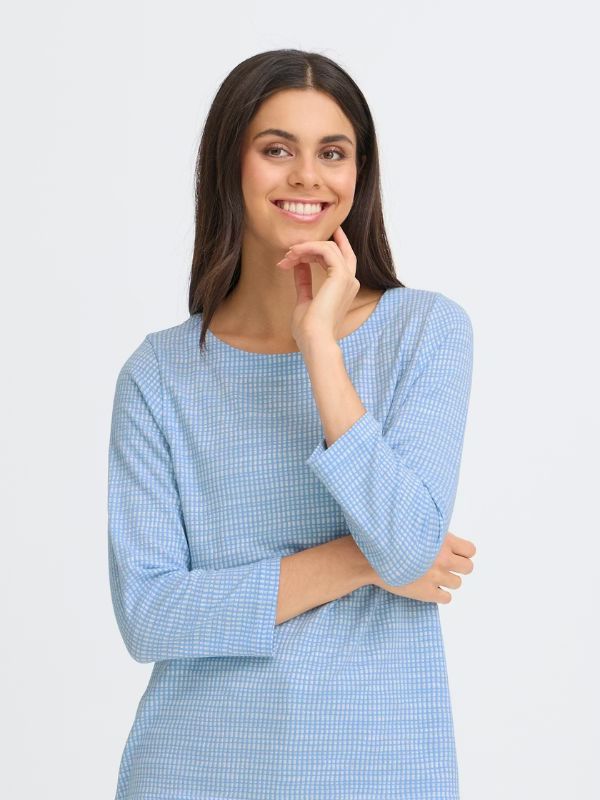 Αυτό το μπλουζάκι με καρό μοτίβο έχει ίσια γραμμή, στρογγυλή λαιμόκοψη και κοντό μανίκι 3/4. Το ύφασμα με την απαλή υφή προσδίδει ένα ανεπιτήδευτο στυλ, καθιστώντας το μια σίγουρη επιλογή για τη σύγχρονη γκαρνταρόμπα.