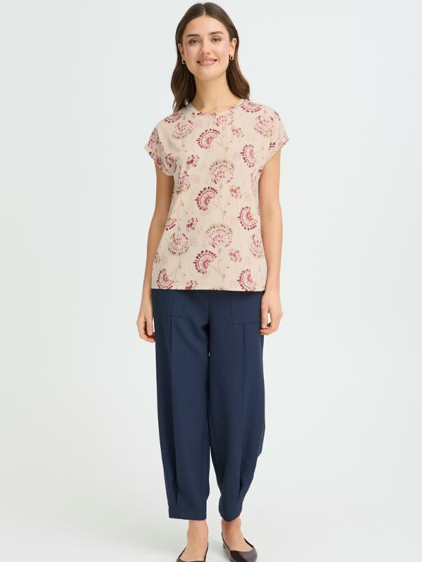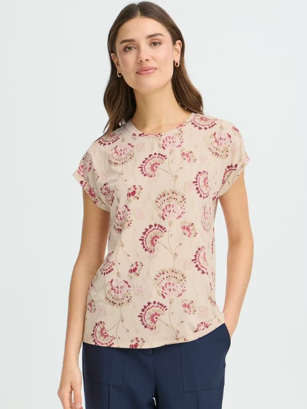 Αυτή η γυναικεία μπλούζα κανονικής γραμμής έχει σχεδιαστεί για άνεση όλη την ημέρα, χάρη στο απαλό ύφασμά της και την κλασική στρογγυλή λαιμόκοψη. Τα κοντά μανίκια και η άνετη γραμμή την καθιστούν ιδανική για ευέλικτους συνδυασμούς, από τη δουλειά μέχρι το Σαββατοκύριακο.