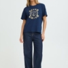 FRANSA Γυναικείo T-Shirt Κοντομάνικo Με Χρυσή Στάμπα Μπλέ