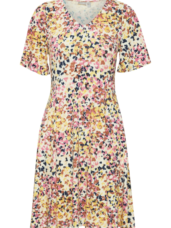 Fransa Φόρεμα Εμπριμέ Ροζ-Κίτρινο Κοντομάνικο