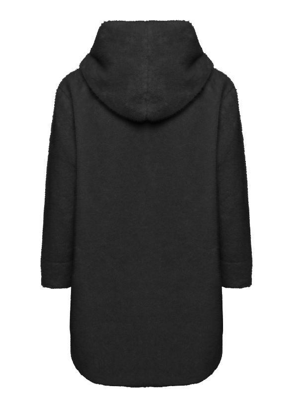 Sarah Lawrence γυναικεία γούνα με κουκούλα και κούμπωμα μπροστά, με μακριά μανίκια και μήκος έως τους γοφούς.