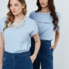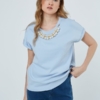 Sarah Lawrence Γυναικεία Μπλούζα Κοντό Μανίκι Με Διακοσμητικές Πέρλες Στο Λαιμό Γαλάζιο