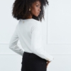 Μακρυμάνικη μπλούζα λευκή. V λαιμόκοψη και λεπτομέρειες στα μανίκια.