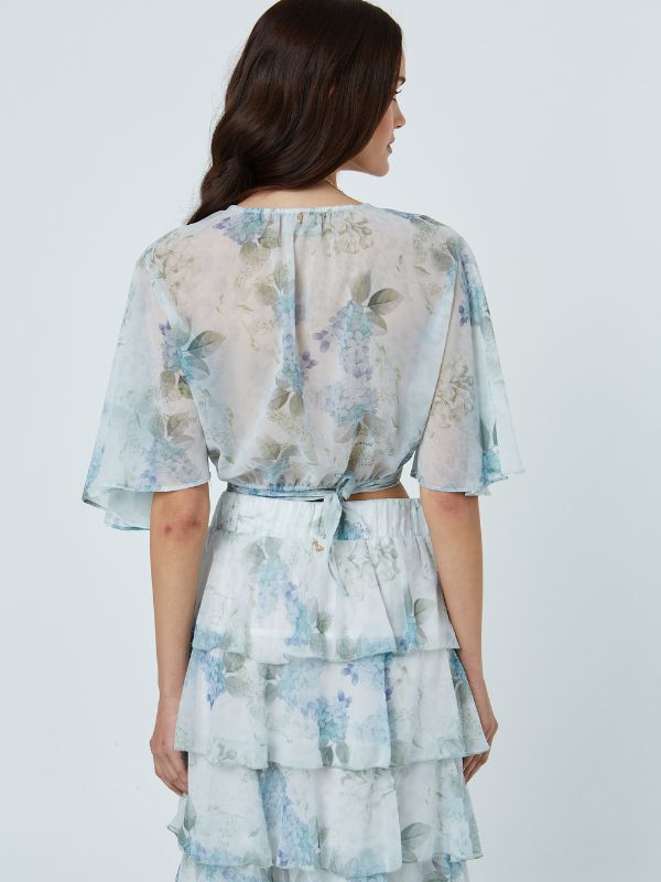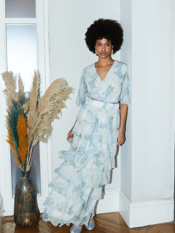 Φούστα μακριά με βολάν σε όλο το μήκος Floral σε Light Blue απόχρωση. Αέρινη και κομψή.