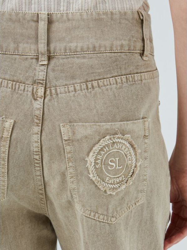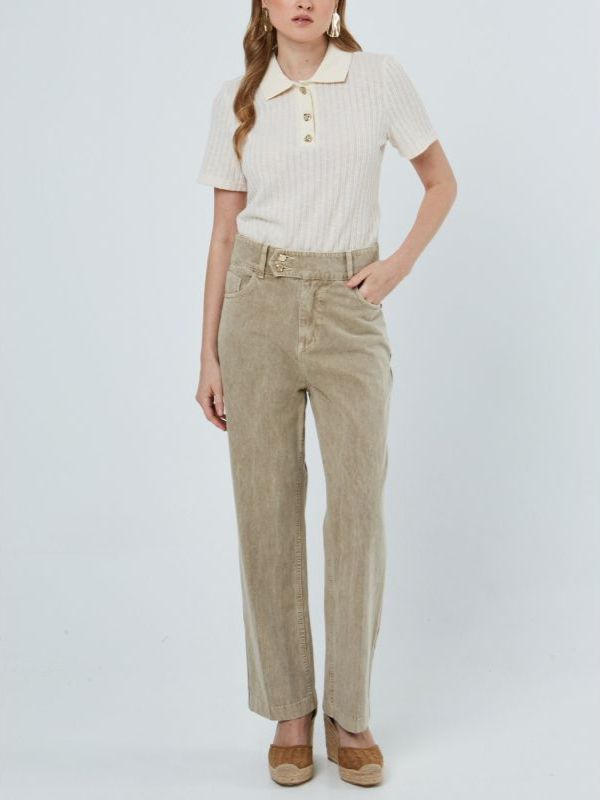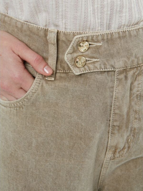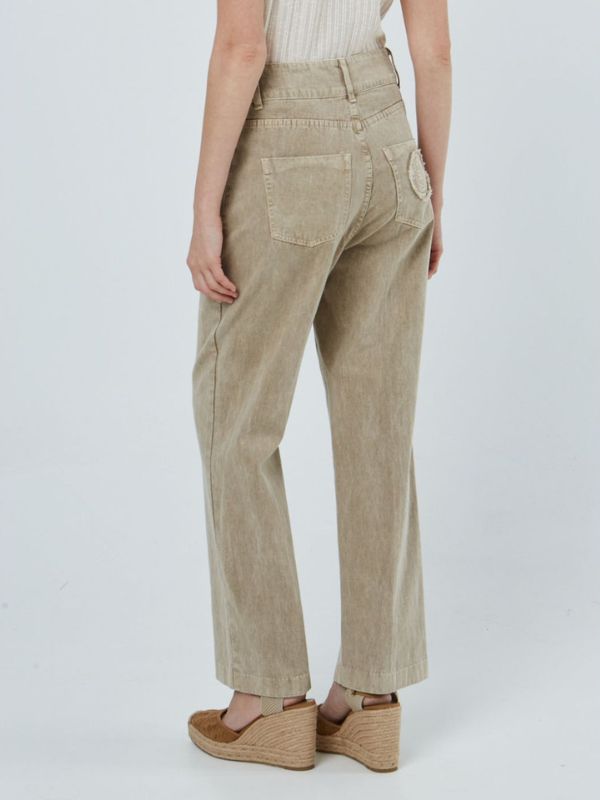 Γυναικείο μπεζ παντελόνι ίσιο με φινίρισμα stonewashed.