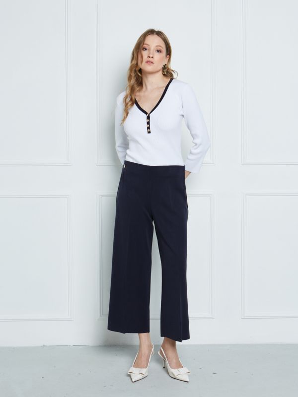 Κομψό παντελόνι σε ίσια, cropped γραμμή. Διαθέτει καθαρό, minimal σχεδιασμό και ανάλαφρη κίνηση, ιδανικό για καθημερινές αλλά και πιο κομψές εμφανίσεις.