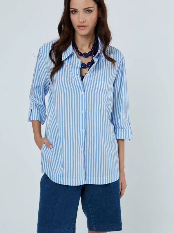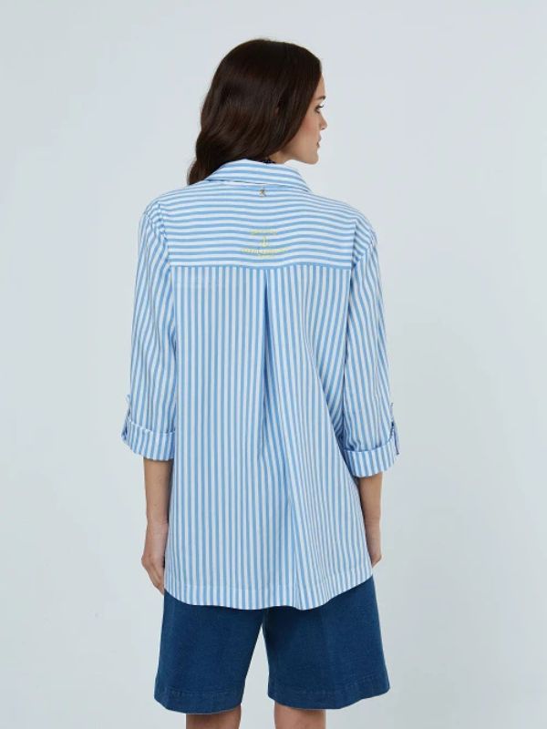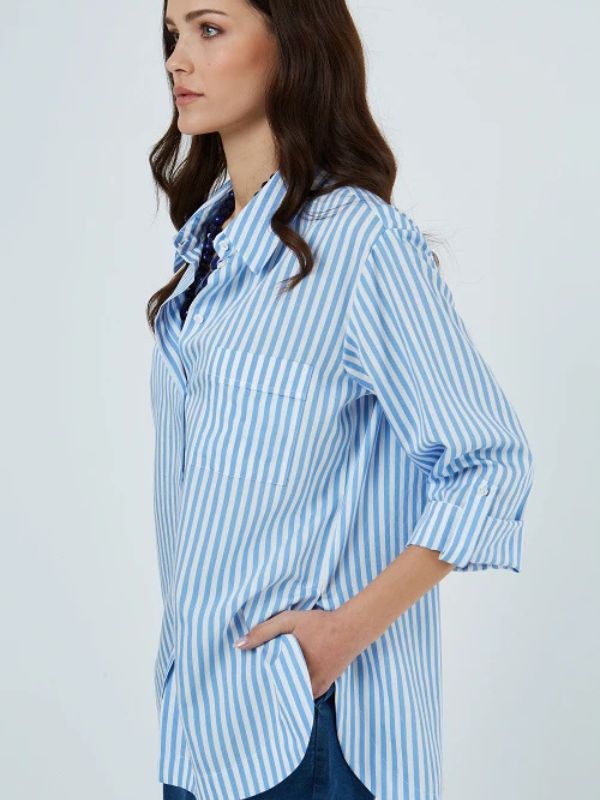Sarah Lawrence Γυναικείο Πουκάμισο Ριγέ Με Μακρύ Μανίκι Twill ΓΑΛΑΖΙΟ