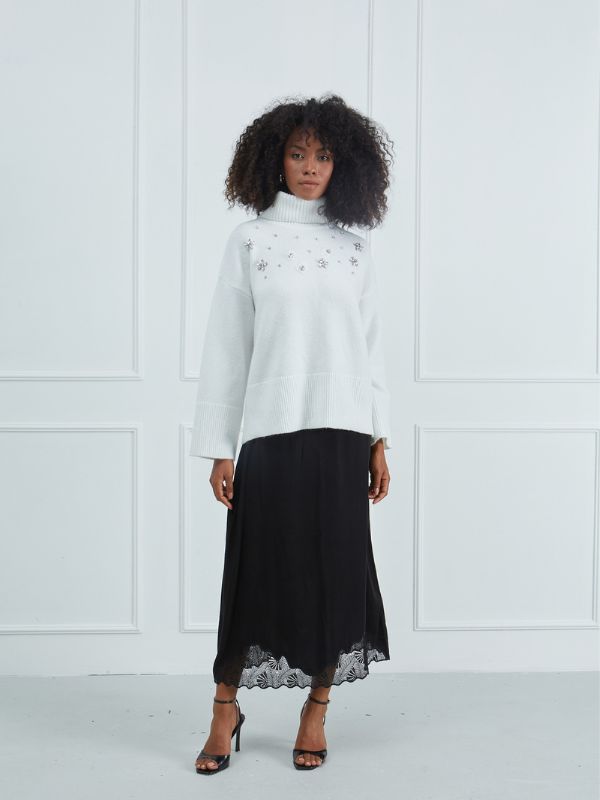 Sarah Lawrence Γυναικείο Πουλόβερ Με Διακοσμητικά Στρας Off white/Εκρού