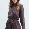 Sarah Lawrence Γυναικείο Σεμιζιέ Φόρεμα Με Κουμπάκια Και Ζώνη Μωβ