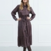 Sarah Lawrence Γυναικείο Σεμιζιέ Φόρεμα Με Κουμπάκια Και Ζώνη Μωβ