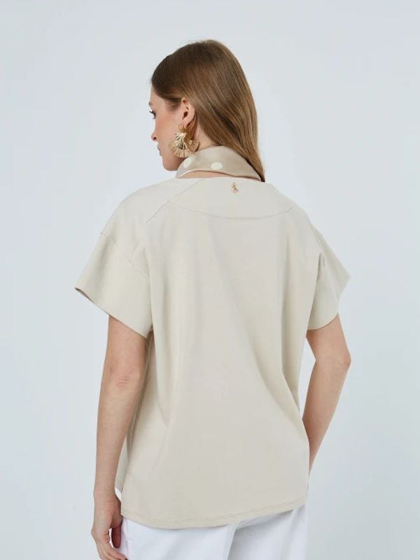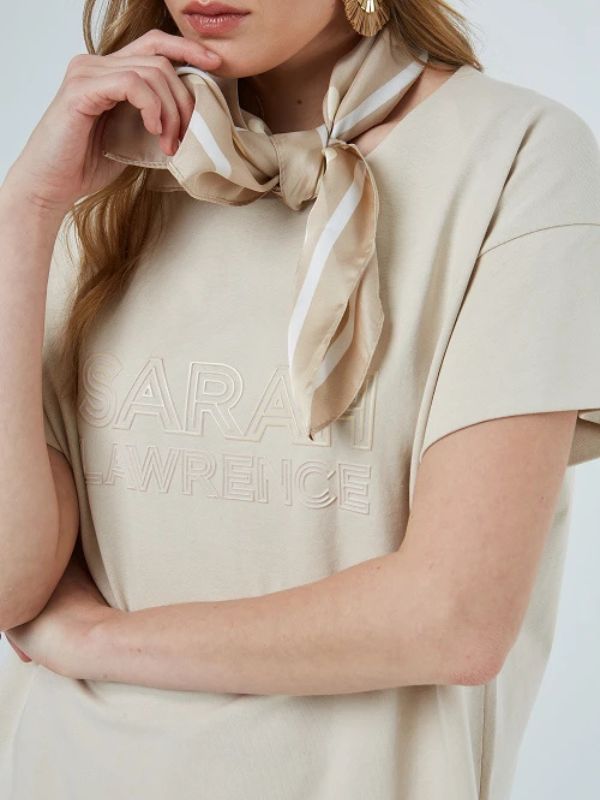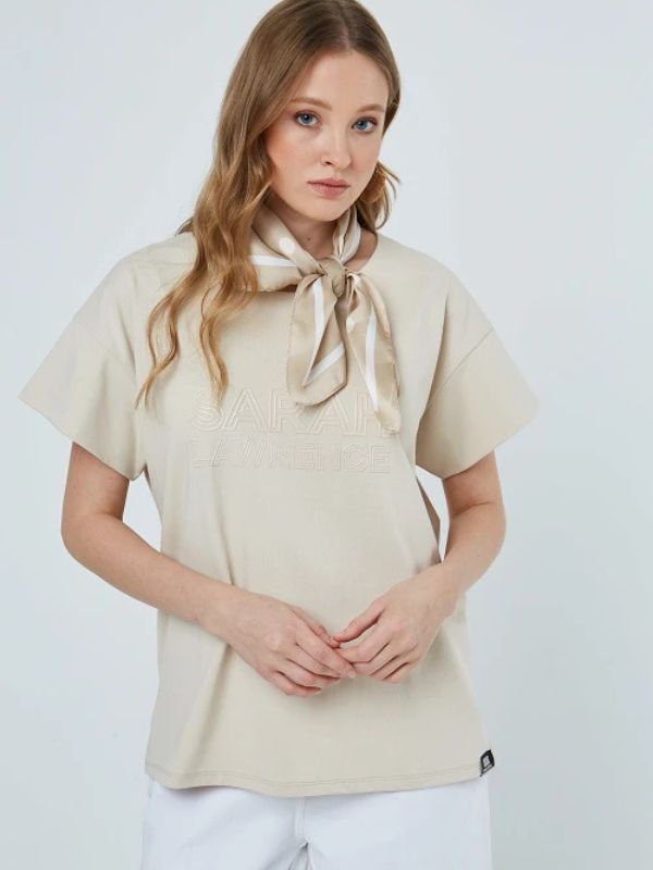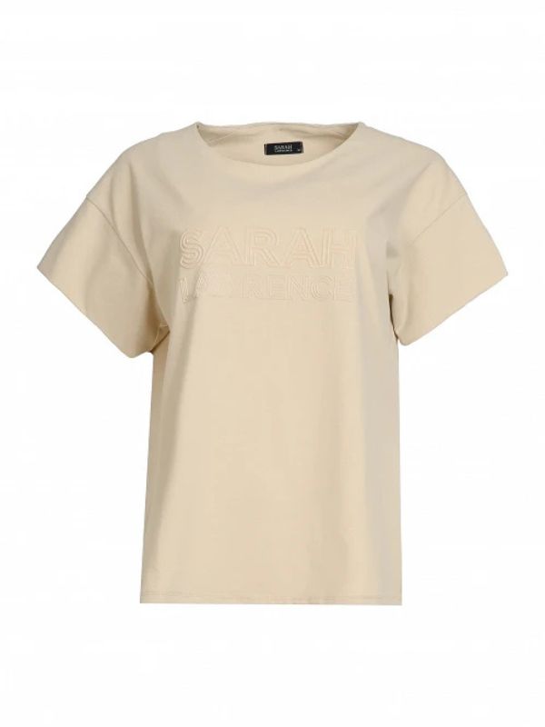 Sarah Lawrence Γυναικείο T-shirt Με Ανοιχτό Λαιμό Και 3D Τύπωμα Λογότυπο Μπεζ