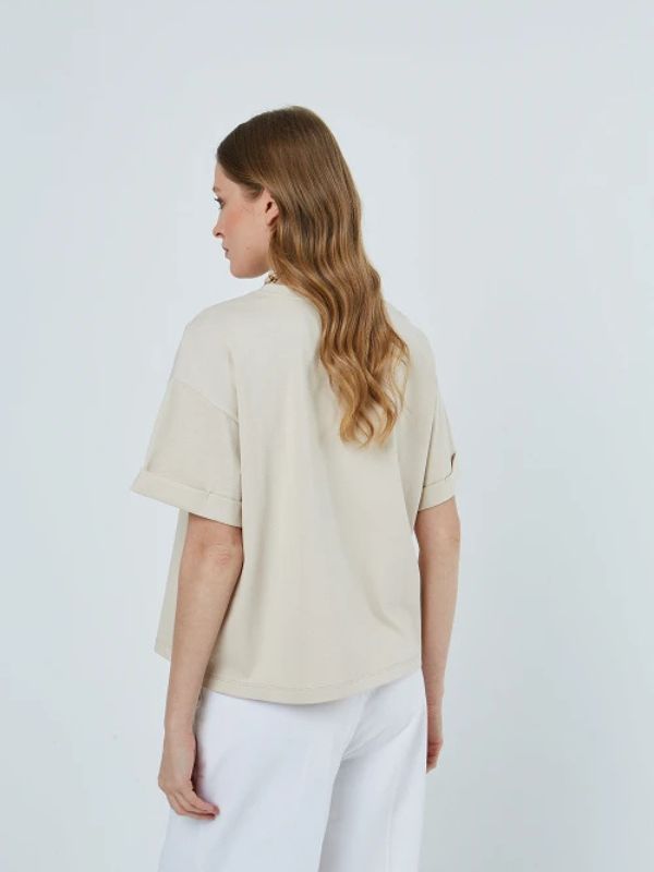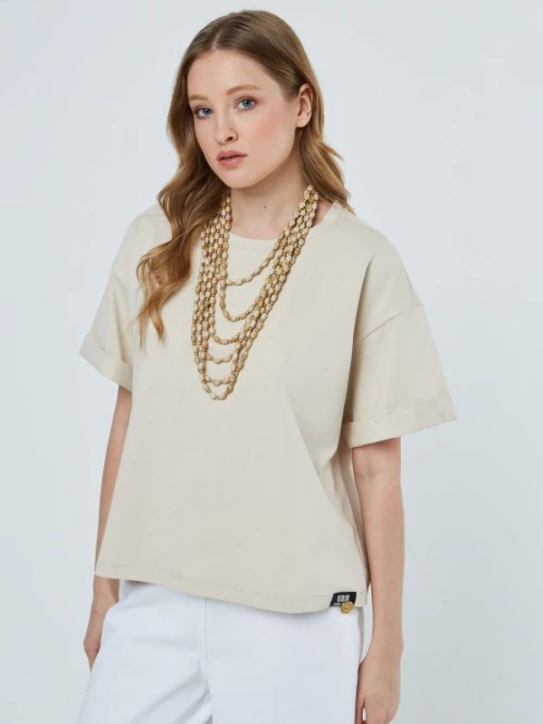 Sarah Lawrence Γυναικείο T-shirt Με 3D Τύπωμα Λογότυπο Μπεζ