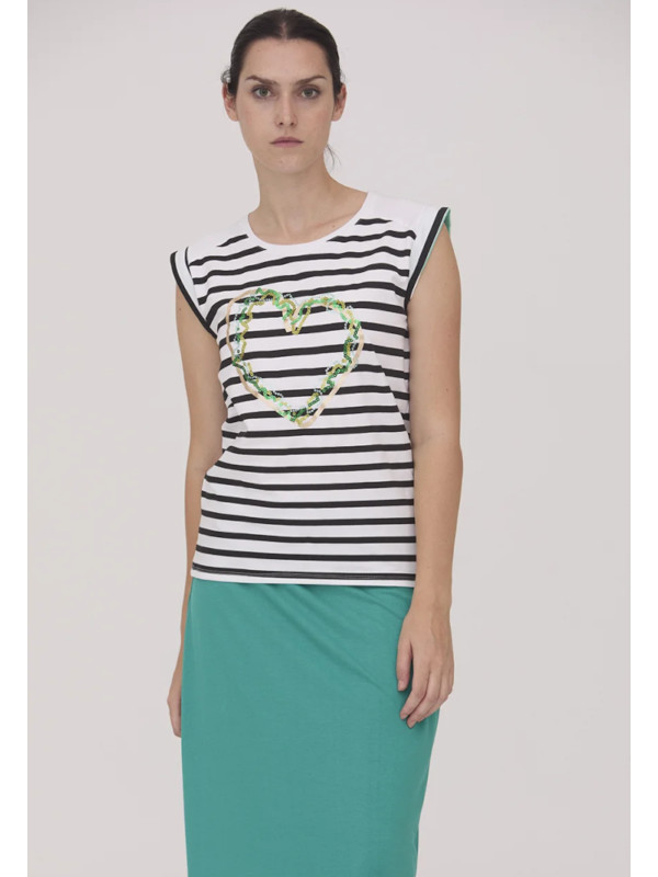Scorzzo Γυναικεία Μπλούζα Αμάνικη Ριγέ Με Καρδιά.