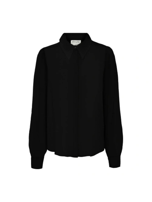 Γυναικείο πουκάμισο, μαύρου χρώματος, με μακριά μανίκια και φαρδιές μανσέτες. Γιακά και κλείσιμο με κουμπιά, σε άνετη γραμμή.